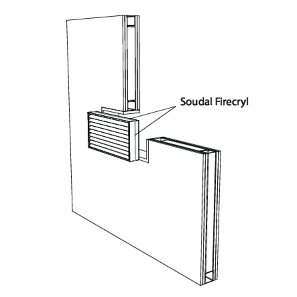 Metallständerwand: Gipskartonwand Typ A (EN520) ≥ 100 mm | EW 60 (ve i o) | Soudal Firecryl | Art der Installation: Einbau, | 100x100 mm ≤ GZ60 ≤ 800x400 mm