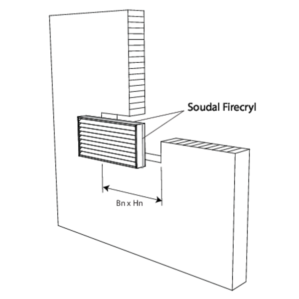 Rohdichte ρ ≥ 500 kg/m³; Tragkonstruktion d ≥ 100 mm | EI 60 (ve i o) | Soudal Firecryl | Art der Installation: Einbau, | 100x100 mm ≤ GZ60 ≤ 800x400 mm
