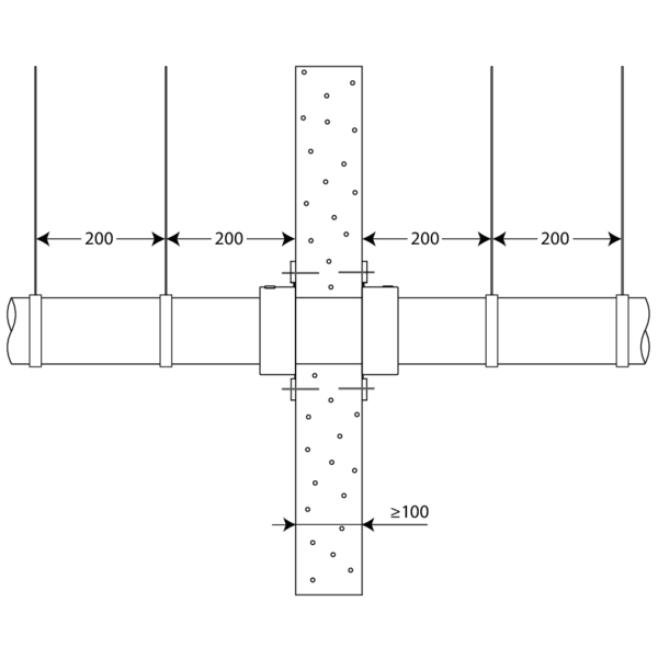 - Die Abstützung der Rohre ist notwendig, um die Funktionstüchtigkeit der Abdichtung im Brandfall zu gewährleisten. Die Rohre sollten nach den allgemein anerkannten Regeln der Technik abgestützt und befestigt werden. Bitte beachten Sie hierzu die Anweisungen des Rohrherstellers.