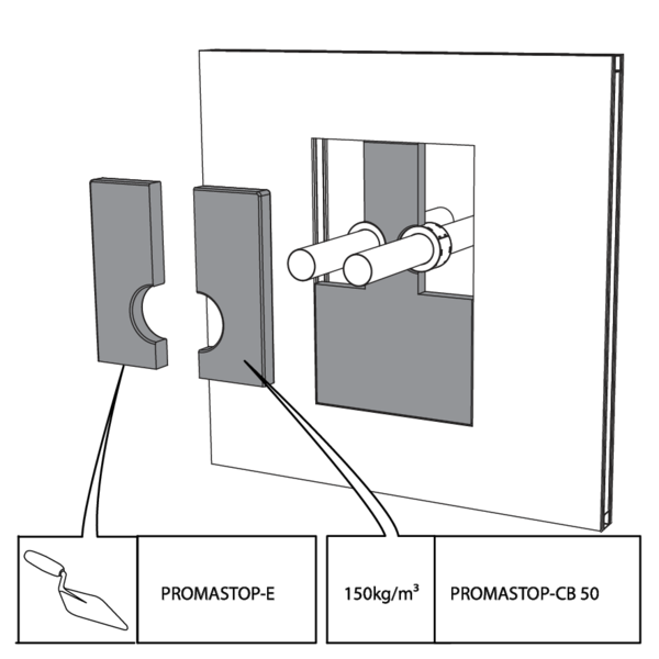Einbau in Leichtbauwand und Massivwand, Abdichtung mit festen und beschichteten Steinwolleplatten