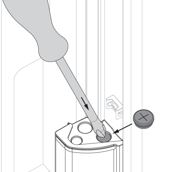 Schrauben Sie den Einbaurahmen mit Schrauben Ø 6 x e mm (e-Dicke des Plattenmaterials) an der Laibung. Diese Schrauben können je nach Tiefe der Laibung in einer der ausgestanzten Löcher befestigt werden.