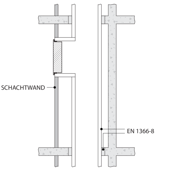 Montage in einem senkrechten Schacht Beton (ohne Einbaurahmen)