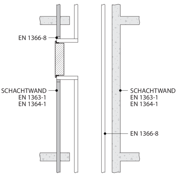 - Rf-t Entrauchungsklappen können an Kanälen angebracht werden, die nach EN 1366-8 und EN 1366-9 geprüft wurden.
