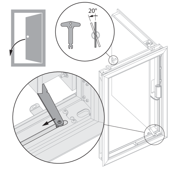 Achtung: Das Anschließen des Rahmens an eine nicht ebene Oberfläche kann zu Verzerrungen dieses Rahmens führen. Prüfen Sie, ob das Spiel zwischen Rahmen und Kleppenblatt noch akzeptabel ist.