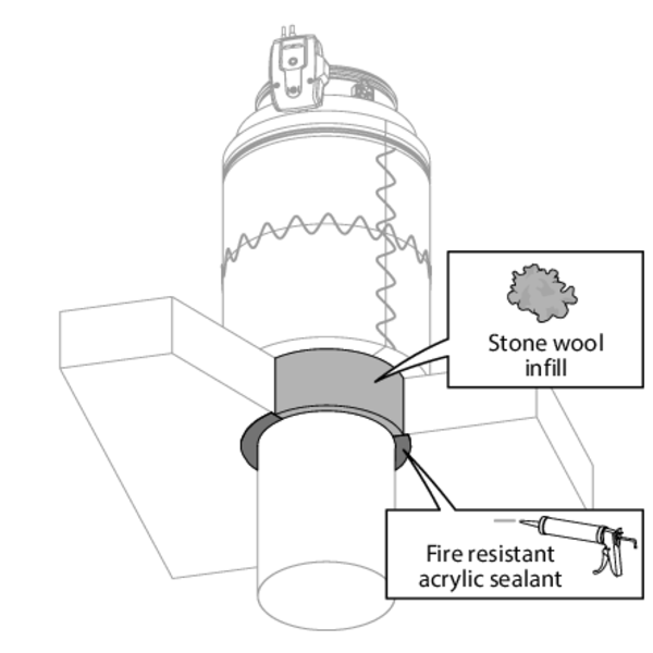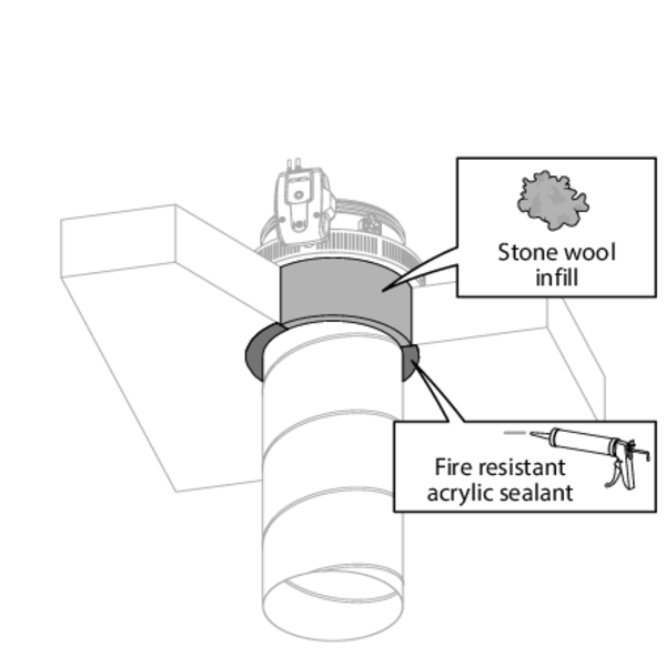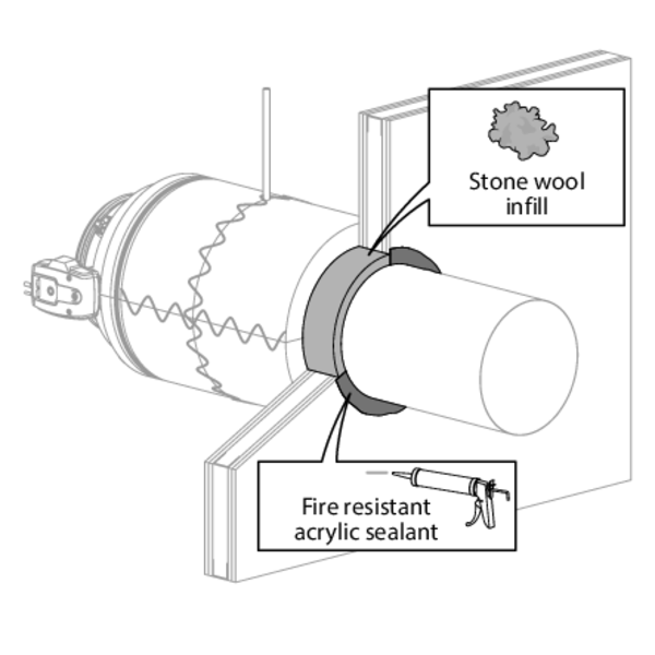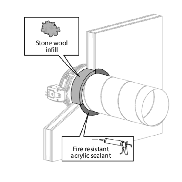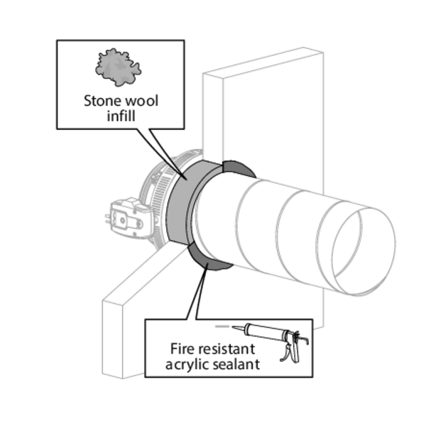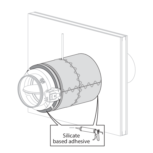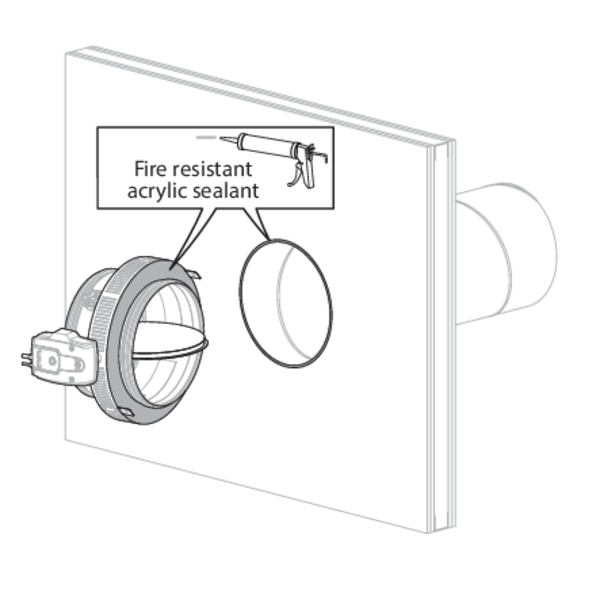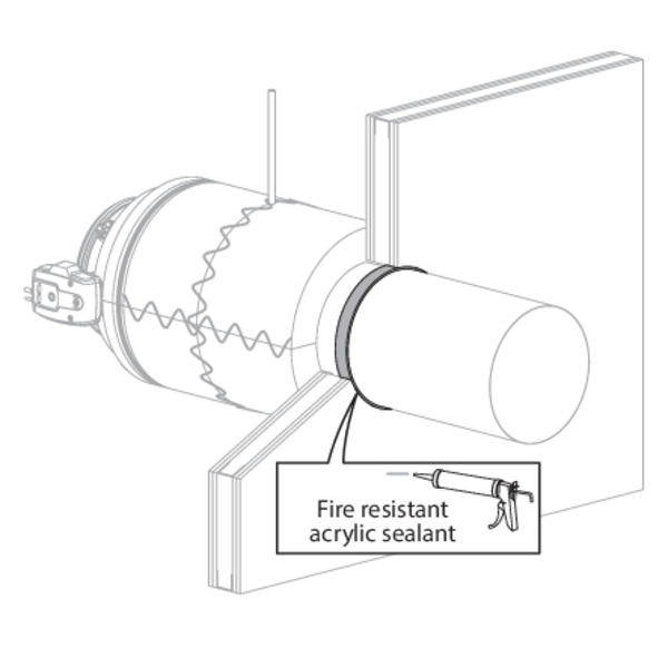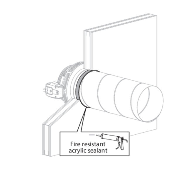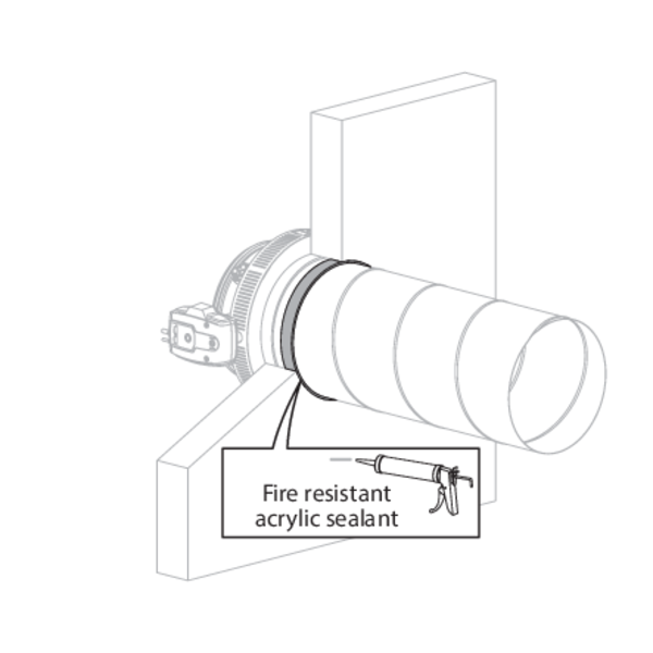 - Aerated concrete ≥ 100 mm | EI 60 (ve i o) S - (300 Pa) | Fire resistant acrylic sealant | Type of installation: remote from the wall, 0-360° | Ø 100-630 mm