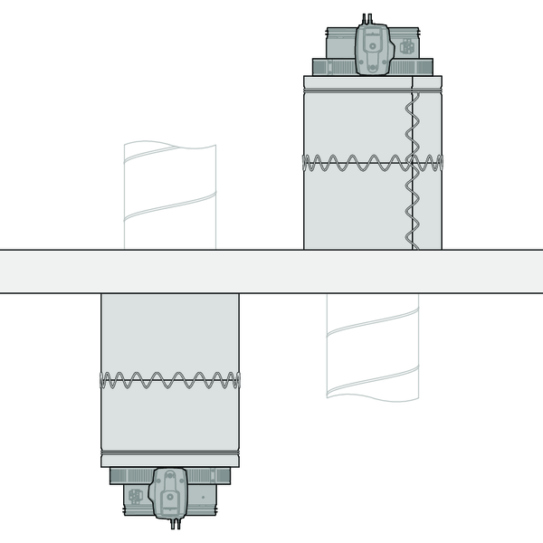 - On one side of the fire damper, the surface-mounted collar acts as a stop for the air duct. On the other side, the stop for the duct is formed by the ends of the fixing plates and the mechanism bridge.