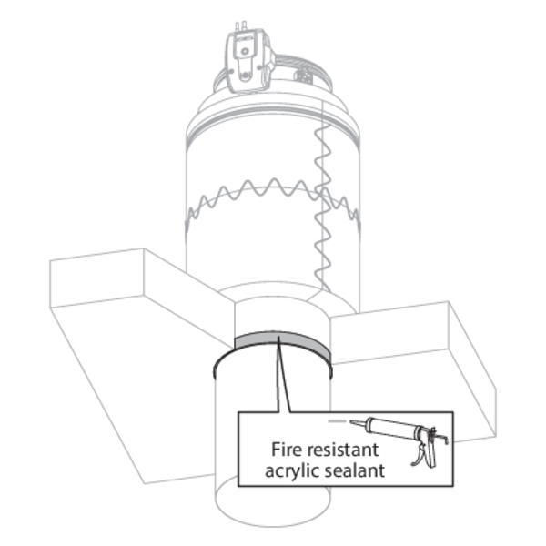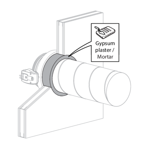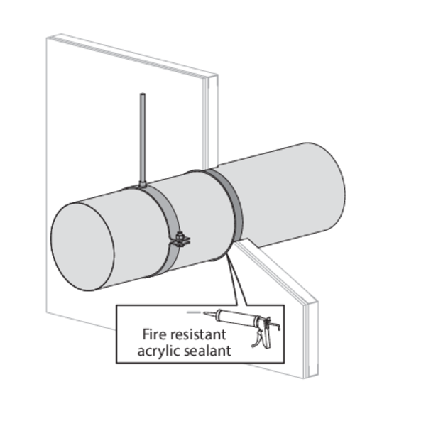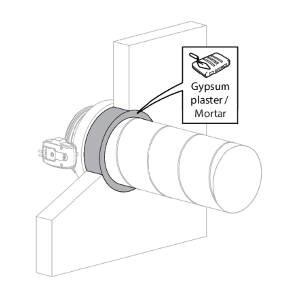 - Aerated concrete ≥ 100 mm | EI 60 (ho i o) S - (300 Pa) | Fire resistant acrylic sealant | Type of installation: remote from the wall, 0-360° | Ø 100-630 mm