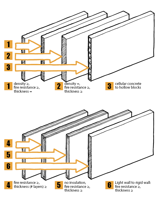 - a rigid wall with a thickness and fire resistance greater than or equal to this of the tested wall. The sealing should be the same as the sealing tested with the light wall. For example, the installer may not replace stone wool by mortar or plaster (unless this sealing method has been successfully tested).