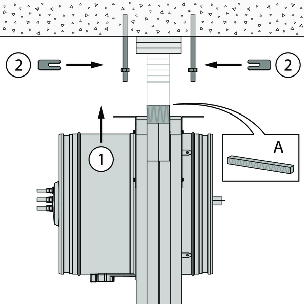 The suspensions consist of threaded rods “C” and U-shaped steel profiles “D”. A free space of maximum 25 mm is left between the threaded rods and the vertical walls of the casing “B”.