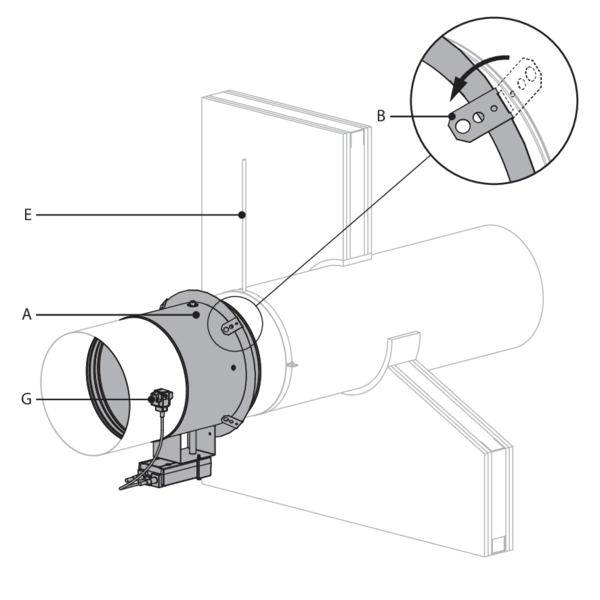 G. For Belimo BFNT actuator: mount the thermo-electrical fuse on the duct on the mechanism side.