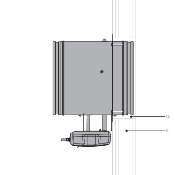 • If the wall thickness exceeds the minimum thickness specified in our installation instructions, the following conditions apply to the sealing depth: - For flexible walls and sandwich panel system walls, the seal must always be applied over the full depth of the wall. - With rigid walls, rigid floors and plaster block walls, the minimum sealing depth as indicated in our installation instructions (often equal to the minimum wall thickness) is sufficient. Apply the seal at the height of the damper blade (from the wall limit indication).
