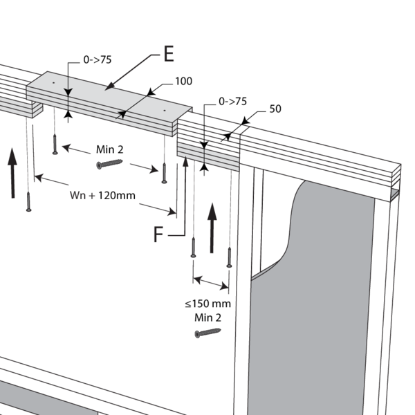 Interrupt the deflection head (C) of the wall (the deflection head arrangement (C) can divert from the detail shown, please refer to the details of the wall system supplier).