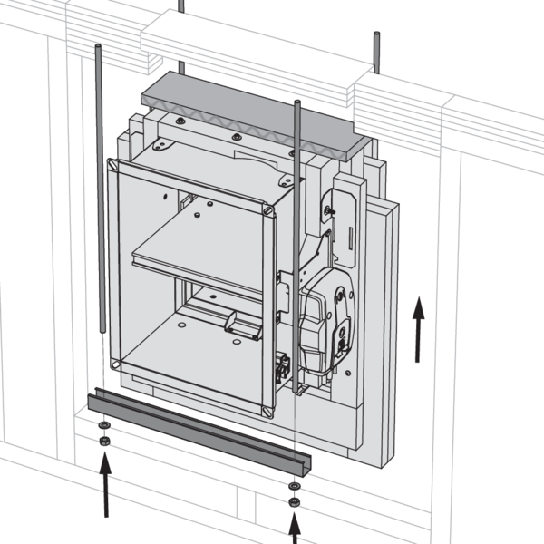 Apply rigid stone wool panels (≥ 150 kg/m³) to a depth of 400 mm (150 mm on the mechanism side of the wall) to seal the opening at the side with minimal distances.