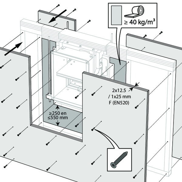 Note: separate conditions apply for installation in flexible shaftwall and CLT wall. Detailed information can be found in the relevant installation methods.