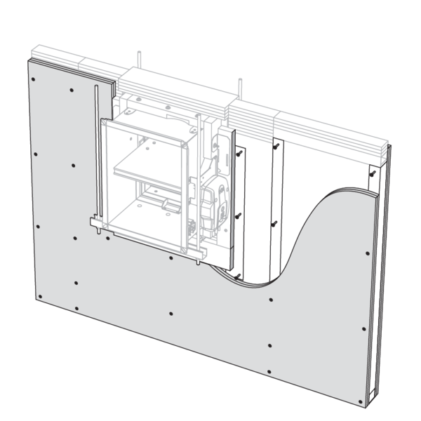 Build the shaftwall acc. to British Gypsum construction details. Create the opening in the wall between the studs or by bridging studs. Mind tolerances in the thickness of the British Gypsum Fireline boards when dimensioning the wall opening. Finished wall opening incl. lining to measure (Wn+65) x (Hn+65).