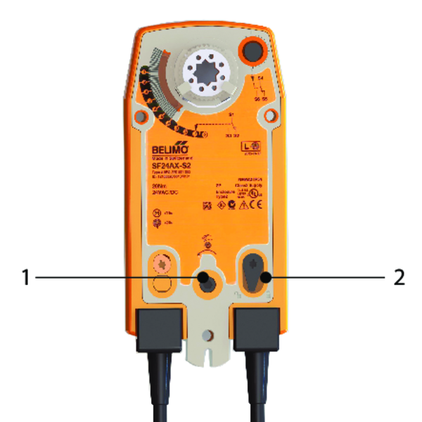 The unlocking mechanism MANF EVO unlatches the damper blade via remote control by sending an electric impulse (VD) or by interrruption (VM) of the magnets power supply. A begin- and end of range switch (FDCU) is standard available.