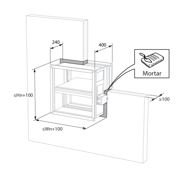 Make the necessary openings ≤ (Wn + 100 mm) x (Hn + 100 mm) in the wall.