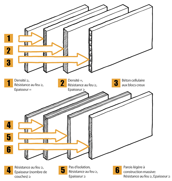 - que la résistance au feu et l'épaisseur de la paroi soient égales ou supérieures à celles de la paroi légère testée, et
