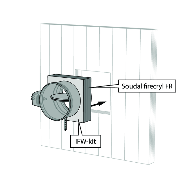 - Ossature métallique et plaques de plâtre Type F (EN 520) ≥ 90 mm | EI 90 (ve i o) S - (300 Pa) | Inbouwblok IFW | Type de pose : encastré, 0-360°. Distances minimales autorisées. | Ø 100-315 mm