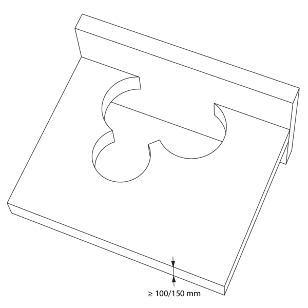Colmatez la réservation du côté des distances minimales à l’aide de panneaux rigides de laine de roche (≥ 150 kg/m³) sur une profondeur de 400 mm (150 mm du côté mécanique de la dalle).
