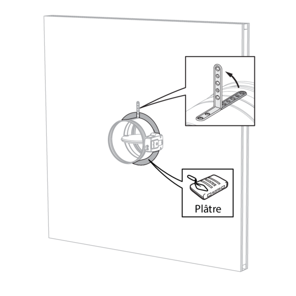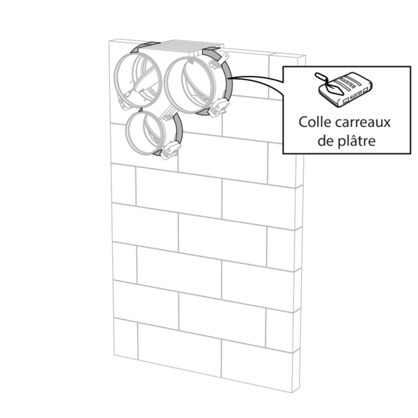 - Carreaux de plâtre ≥ 70 mm | EI 120 (ve i o) S - (500 Pa) | Colle carreaux de plâtre | Type de pose : encastré, 0-360°. Distances minimales autorisées avec axe jusqu'à 45°. | Ø 100-315 mm