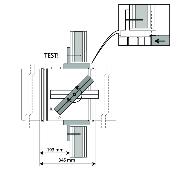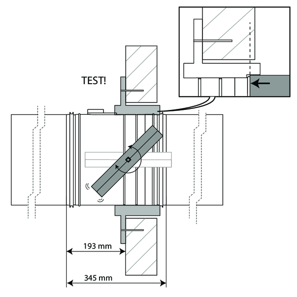 Selon la norme d’essai européenne EN 1366-2, un clapet coupe-feu doit être installé à une distance minimale de 75 mm d’une paroi/dalle adjacente et de 200 mm d’un autre clapet, sauf si la solution a été testée à une distance inférieure. Cette gamme de clapets Rf-t a été testée avec succès et peut être installée, en paroi verticale ou en dalle, à une distance inférieure au minimum imposé par la norme.