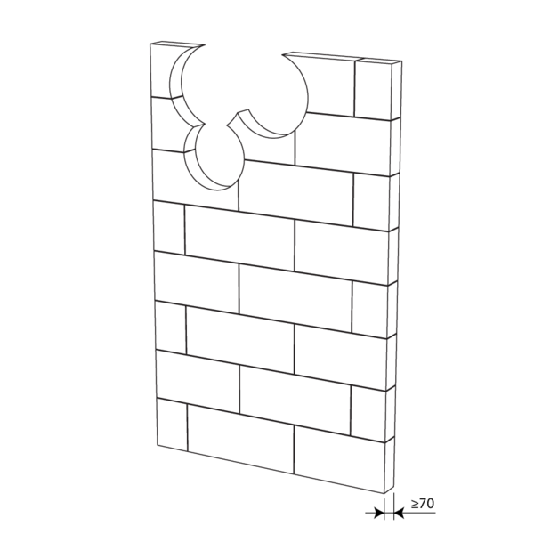 Pour les parois flexibles, prévoyez un chevêtre autour de la réservation. Exception : pour la résistance au feu EI60S/EI90S et si colmatage avec des panneaux de type Promastop ou Hilti, il n'est pas nécessaire, du point de vue de la protection incendie, de prévoir un chevêtre.