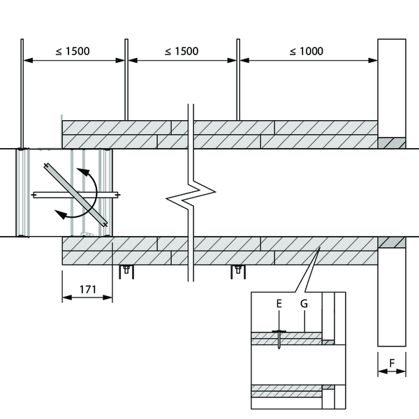 Lors du montage d'un seul clapet coupe-feu à distance minimale du plafond, il n'est pas nécessaire, du point de vue de protection incendie, de prévoir un chevêtre autour du clapet coupe-feu en cas de résistance au feu EI60S/EI90S souhaitée.
