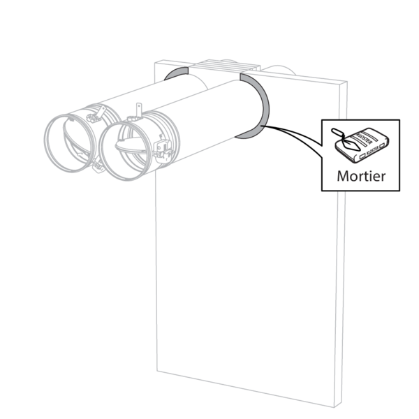 - Béton cellulaire ≥ 100 mm | EI 90 (ve i o) S - (500 Pa) | Mortier | Type de pose : encastré, 0-360°. Distances minimales autorisées avec axe jusqu'à 45°. | Ø 100-315 mm