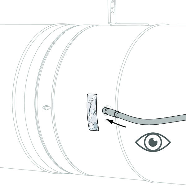 Introduisez la caméra de l'endoscope (par exemple Inspecam Rf-t) dans la réservation et inspectez l'intérieur du clapet.