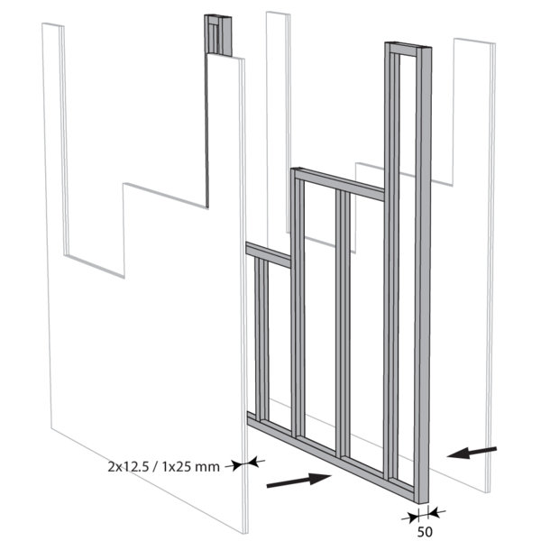 - Lors de l'installation d'un clapet coupe-feu dans une paroi métallique flexible, certaines méthodes d'installation ne nécessitent pas la mise en place de profilés de renforcement autour de la réservation de la paroi du point de vue de la protection contre l'incendie (voir ci-dessous). Il convient de toujours suivre les instructions générales du fabricant de ces systèmes de parois lors de la construction de ce type de paroi.