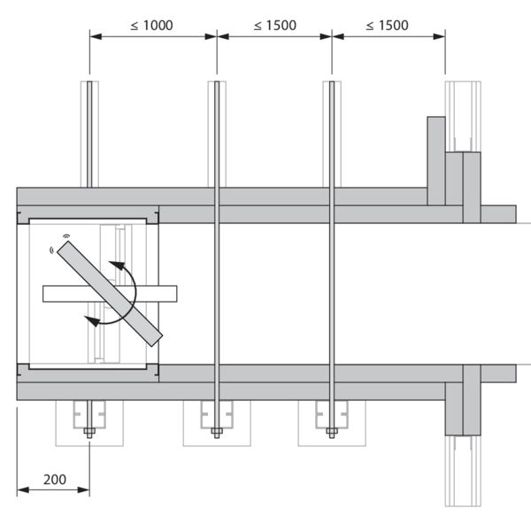 - Respectez les distances de sécurité par rapport aux autres éléments constructifs. Le mécanisme de déclenchement doit également rester accessible : prévoyez pour cela un espace libre de 200 mm autour du boîtier.