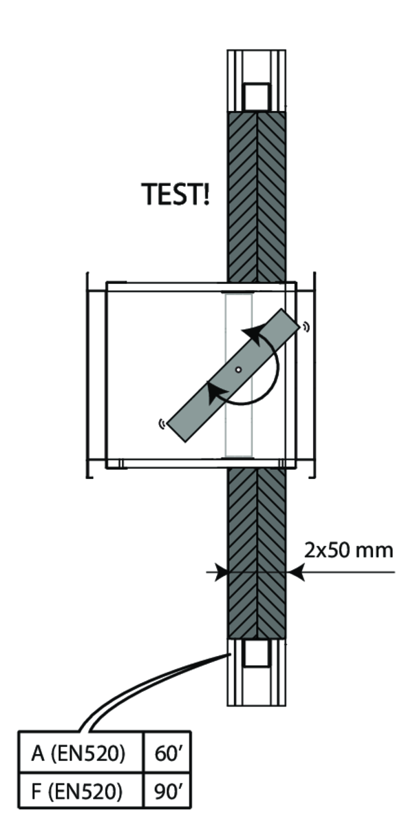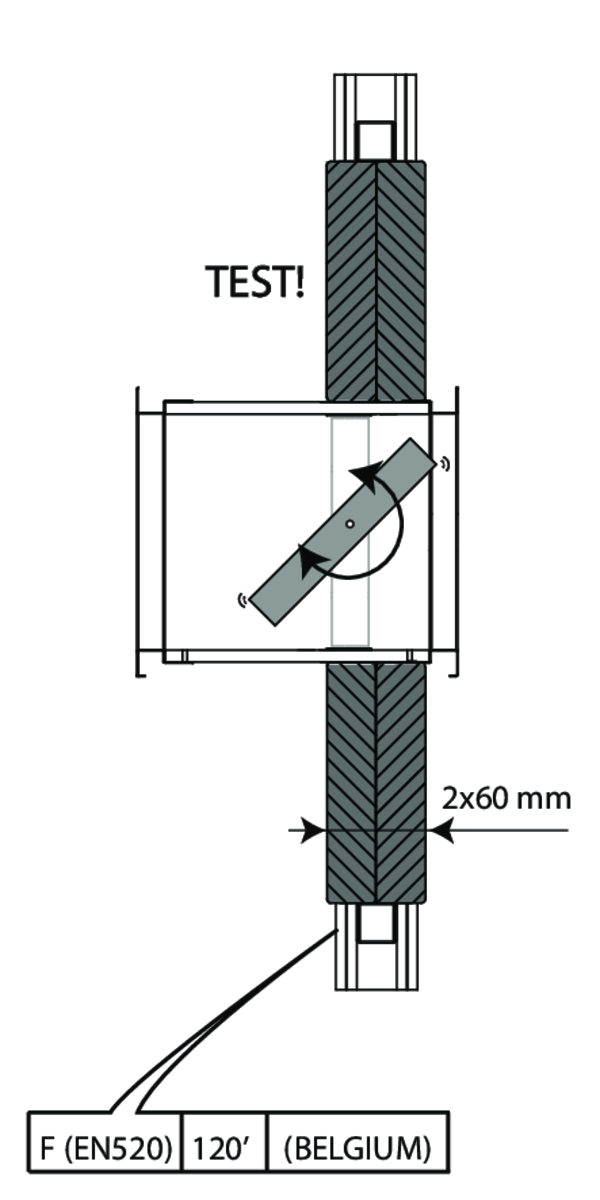 - Les clapets coupe-feu Rf-t sont toujours testés dans des châssis de supports standardisés conformément à la EN 1366-2. Les résultats obtenus sont valables pour tous les châssis de supports similaires qui ont une résistance au feu, une épaisseur et une densité similaire ou supérieure à celles du test.