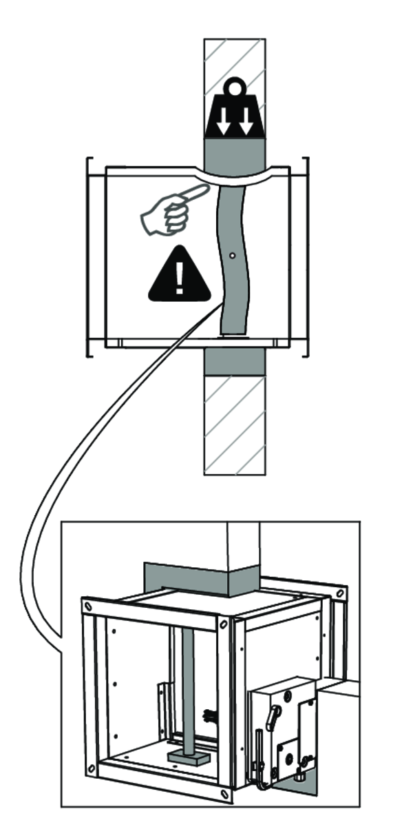 - Respectez les distances de sécurité par rapport aux autres éléments constructifs. Le mécanisme de déclenchement doit également rester accessible : prévoyez pour cela un espace libre de 200 mm autour du boîtier.