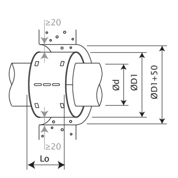 D1 = diamètre extérieur du manchon - d = diamètre intérieur du manchon, correspondant au diamètre extérieur du tuyau