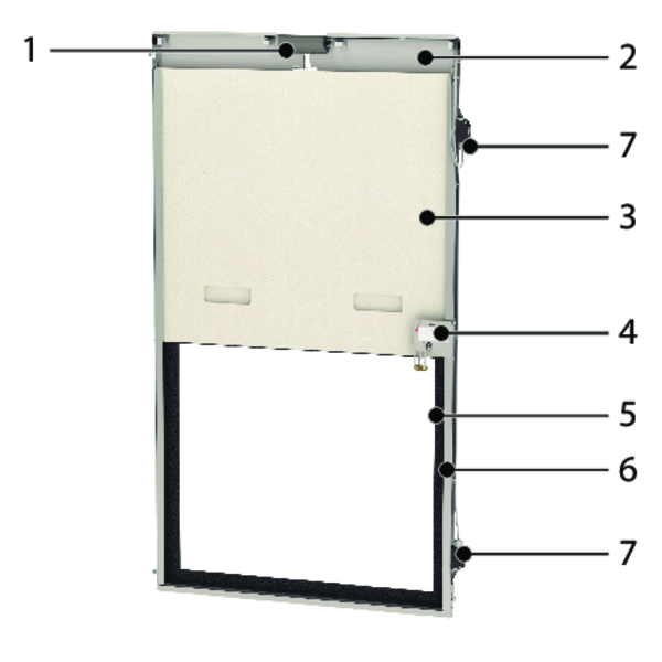 Volet de transfert à guillotine testé selon la norme Européenne EN 1634-1 et classé E60 ou EI60 (si grille). Le volet est installé en applique sur paroi légère et paroi massive de 100 mm ou encastré avec l’option E-VT60.