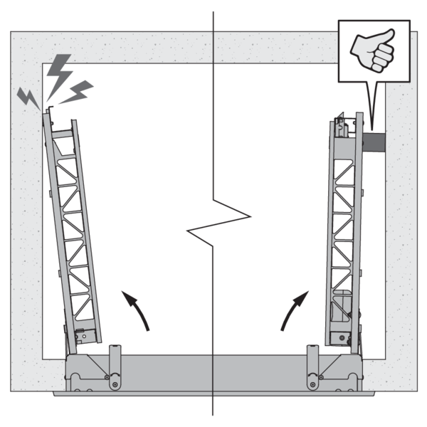 - Attention : pour le montage en conduit de désenfumage tenez compte du débattement du volet.