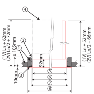 • 6. Cotes d'encastrement sans précadre (Ln+10) x (Hn+10)mm