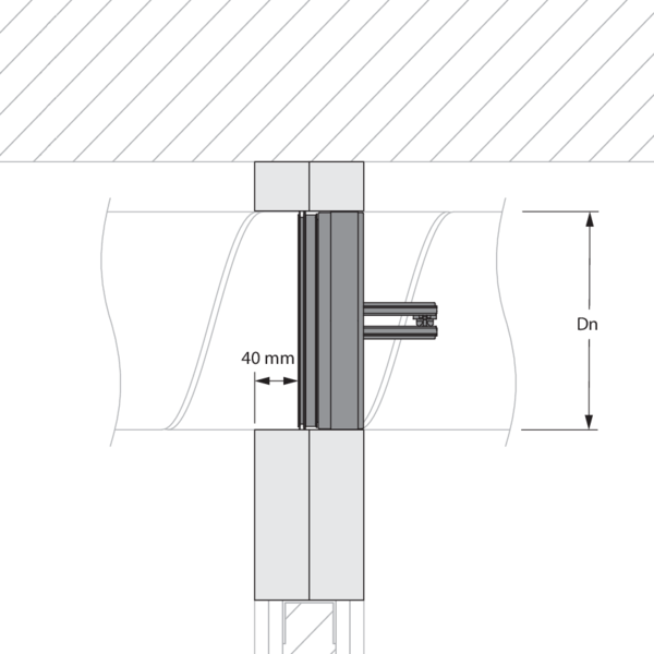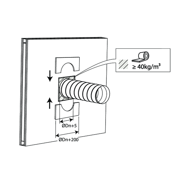 - Ossature métallique et plaques de plâtre Type A (EN 520) ≥ 100 mm | EI 60 (ve i o) S - (300Pa) | Panneaux de laine de roche + enduit ≥ 140 kg/m³ | Type de pose : encastré en conduit traversant, 0-360°. Distances minimales autorisées. | SC+60 Ø 100-200 mm