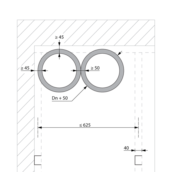 - Béton cellulaire ≥ 100 mm | EI 60 (ve i o) S - (300Pa) | Conduit isolé (ArmaFlex EVO, ArmaFlex Protect – jusqu'à 13 mm) + panneaux de laine de roche + enduit ≥ 140 kg/m³ | Type de pose : encastré en conduit traversant, 0-360° | SC+60 Ø 100-200 mm
