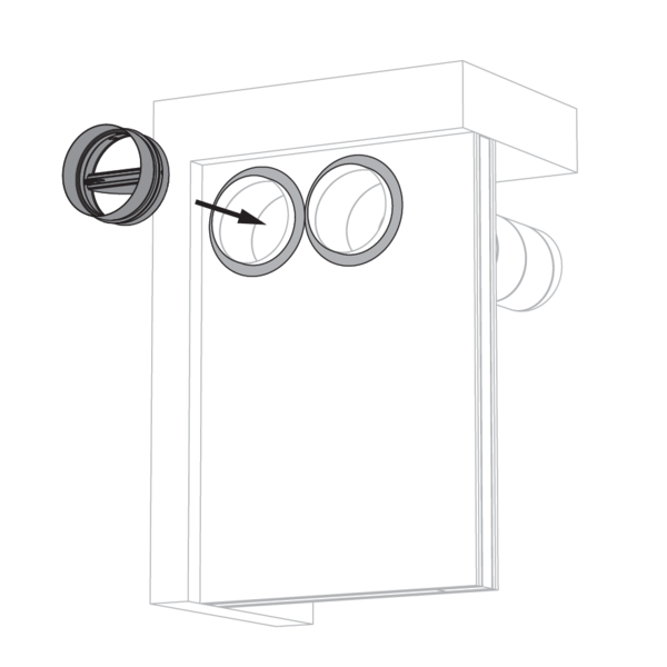 Selon la norme d’essai européenne, un clapet coupe-feu doit être installé à une distance minimale de 75 mm d’une paroi adjacente et de 200 mm d’un autre clapet, sauf si la solution a été testée à une distance inférieure.