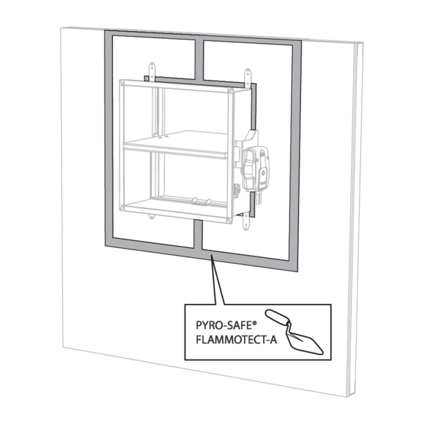 Pour EI 120 S, le tunnel du clapet doit être recouvert d'un couche (> 1 mm) d'enduit (type PROMASTOP-CC / HILTI CFS-CT) des deux côtés de la paroi.