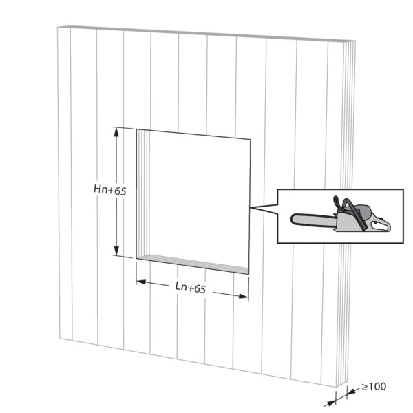 Le clapet peut mais ne doit pas être centré dans la réservation (de dimensions maximales Ln x Hn clapet + 800 mm). Une distance maximale de 400 mm doit être respectée par rapport au bord de la réservation.