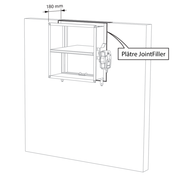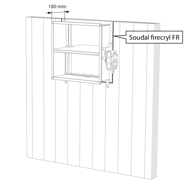 Le corps du clapet est également ainsi protégé sur une longueur de 150 mm. Une réservation est opérée dans le panneau de laine de roche à hauteur du mécanisme afin de garantir l’accès à celui-ci.