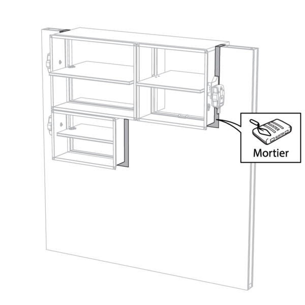 Pour une paroi flexible, prévoyez un chevêtre autour de la réservation. Exception : pour la résistance au feu EI60S et si colmatage avec des panneaux de laine de roche de type Promastop ou Hilti, il n'est pas nécessaire, du point de vue de la protection incendie, de prévoir un chevêtre.