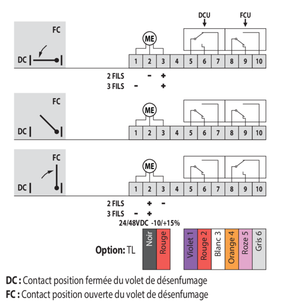 déclenchement télécommandé par connexion de 24 V CC ou 48 V CC.