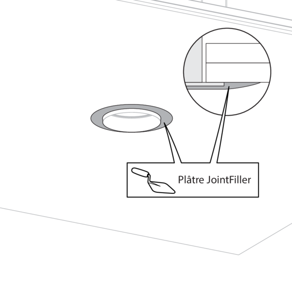 Faites une réservation circulaire dans le plafond suspendu, dont le diamètre est indiqué dans le tableau.