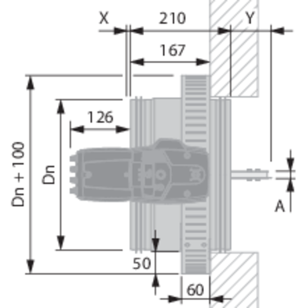 Dépassement lame: X = du côté du mécanisme, Y = du côté mur