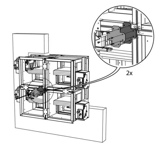 Pour les batteries B22: fixez de chaque côté la pièce centrale en croix à l'aide de 8 vis autoperceuses.