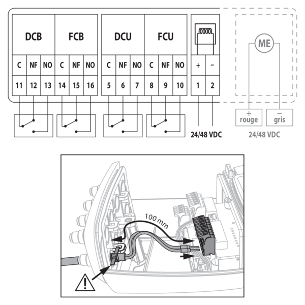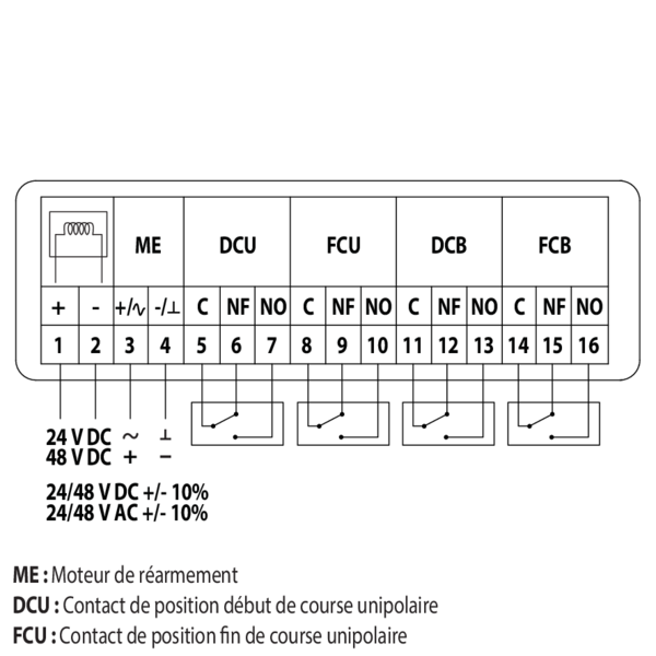 Mécanisme de commande évolutif pour commande à distance 24V/48V (avec fusible thermique) + contact de position bipolaire fin et début de course -